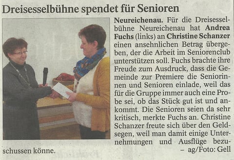 Dreisesselbühne spendet 300 € für Altenclub