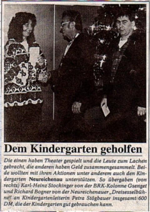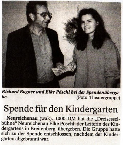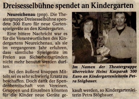 Die Dreisesselbühne spendete 500 Euro an die Christliche Arbeiterjugend zur Renovierung des Jugendheims, die am 21.2.2006 an unseren Mitspieler Franz Schmid übergeben wurden.
